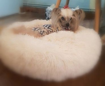 I am Irish and live in beautiful south west France, just north of Bordeaux. For over 26 years I have had the pleasure of presenting my Yorkshire Terriers and Chinese Cresteds at shows in countries like USA, Canada, UK, France, Spain, Portugal, Gibraltar, Belgium, Holland, Sweden, Finland, Denmark, Slovakia, Austria, Germany, Hungary, Croatia, Macedonia, Montenegro, Serbia, Czech Republic, Switzerland, Bosnia & Herzegovina - all over the world and I have made up over 80 Champions. I had the honour to be the owner/handlerof the only Powder Puff Chinese Crested to ever win a BEST IN SHOW in France "Multi Champion Ghostmar's Dark Shadows" aka Collins. I breed very occasionally as finding the perfect owners is my priority. All our dogs share our lives in our home with our kids, grandkids and our cats as part of our family. Our eldest girl, Bisou was born here and she will be 16 years old in February. Our youngest girls were born here in June 2021, Cory & Queenie, and will soon be having some fun at shows, health situation permitting. I am crazy about Chinese Cresteds!